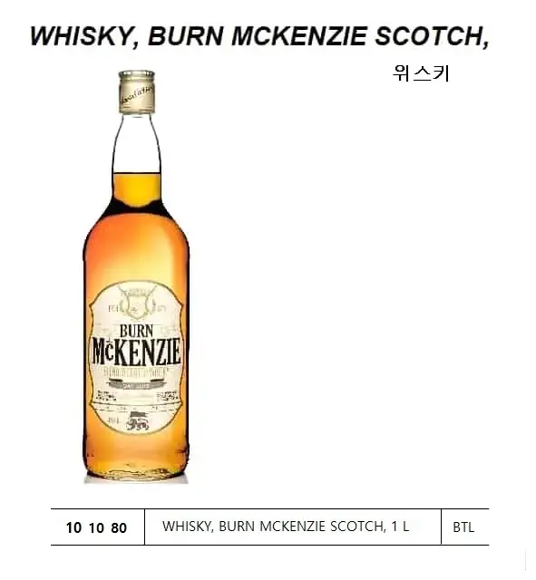 | Description | WHISKY, BURN MCKENZIE SCOTCH, 1 L |