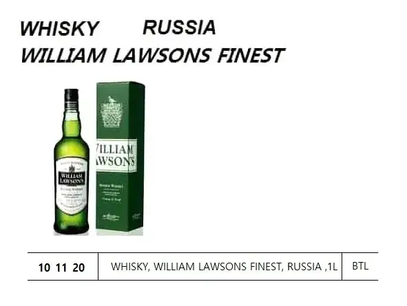| Description | WHISKY, WILLIAM LAWSONS FINEST, RUSSIA ,1 L |