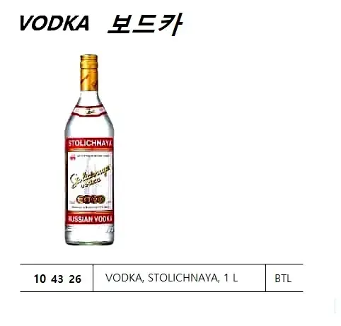 | Description | VODKA, STOLICHNAYA, 1 L |