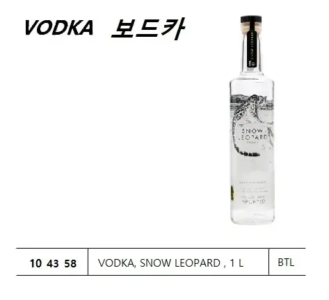 | Description | VODKA, SNOW LEOPARD , 1 L |