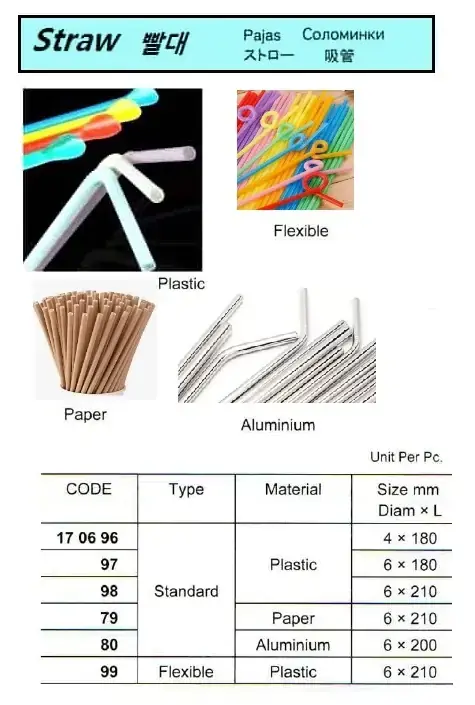 | Description | STRAW, STANDARD, ALUMINIUM, 6 x 200 MM |