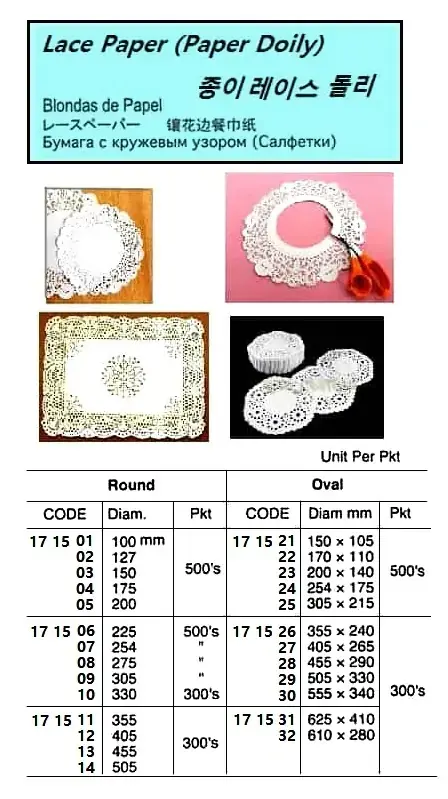 | Description | LACE PAPER, ROUND, 175 MM 500'S |