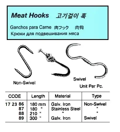 | Description | ST.STEEL MEAT HOOK, NON-SWIVEL 210 MM |