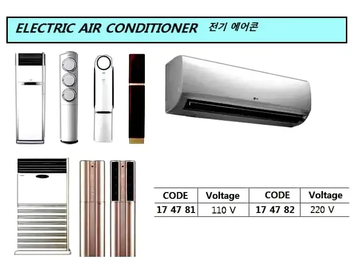 | Description | ELECTRIC AIR CONDITIONER, 220 V |