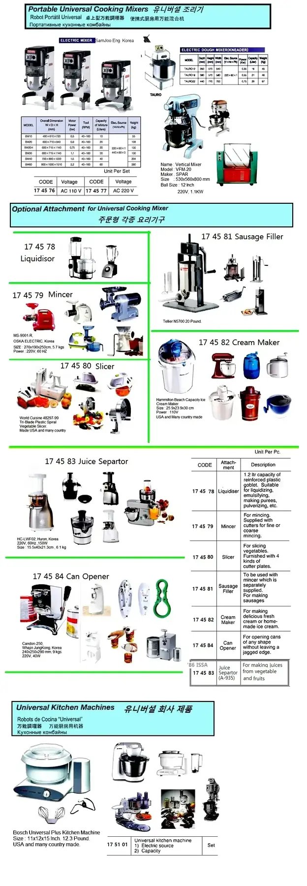 | Description | UNIVERSAL KITCHEN MACHINE |