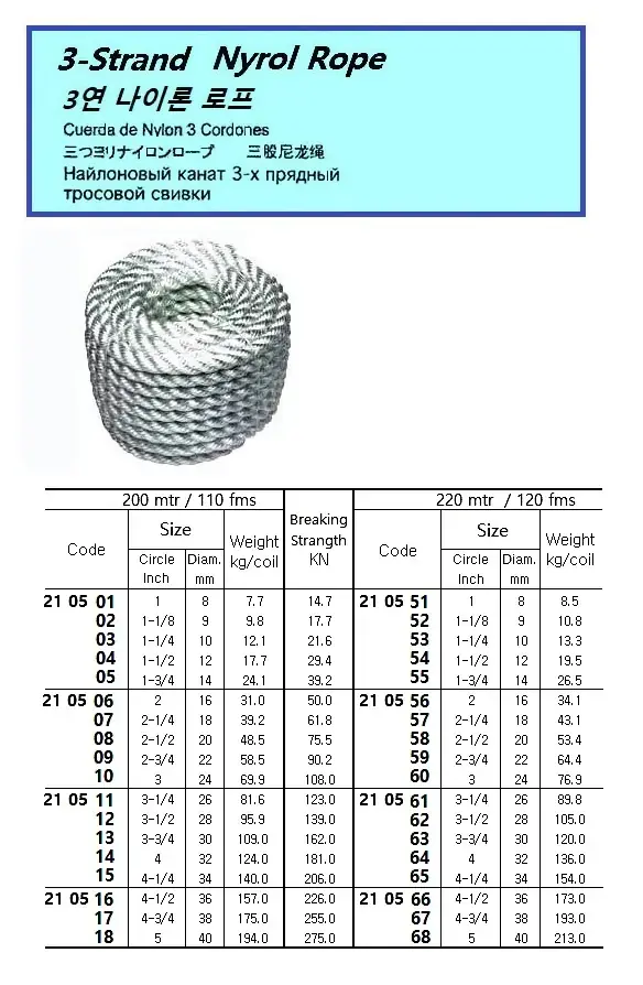 | Description | NYLON ROPE 3-STR. 4"CIR ( D= 32 MM )x 220 M |