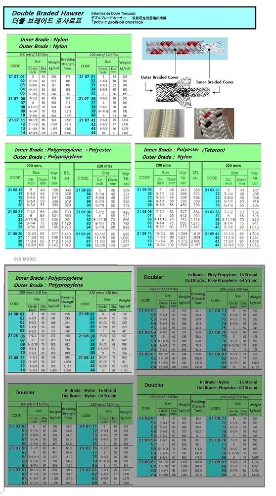 | Description | DOUBLE-BRAIDED PE+PP HAWSER, 8"CIR ( D= 65 MM )x 220 M |