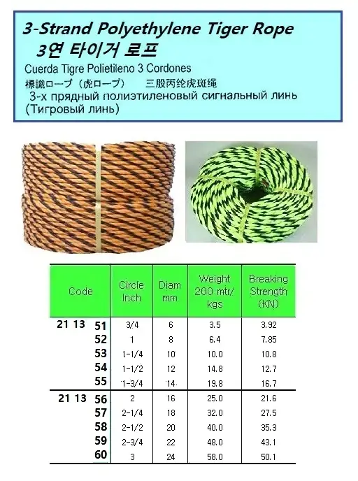 | Description | TIGER ROPE P.E 3-STR. BLACK/YELLOW 3"CIR ( D= 24 MM )x 200 M |