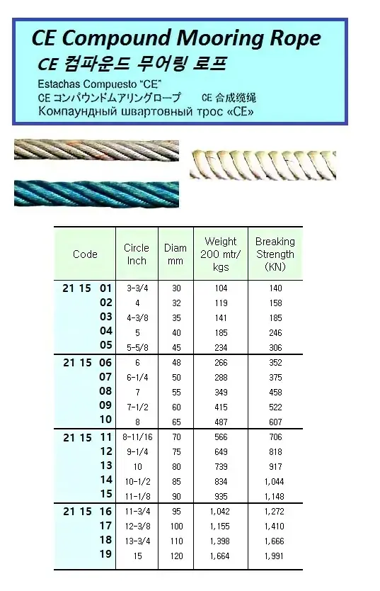 | Description | CE COMPOUND MOORING ROPE, 200 MTR/CL ,48 MM |