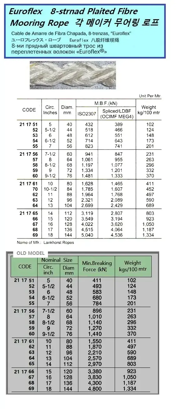 | Description | 8-STR EUROFLEX MOORING ROPE, 200 MTR, 72 MM, LDBF: 1201 KN |