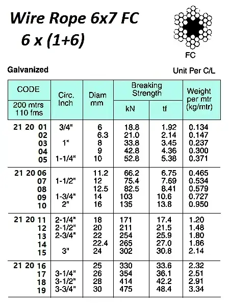 | Description | WIRE ROPE, GALV. 6x7 FC, 26 MM DIA x 200 M |