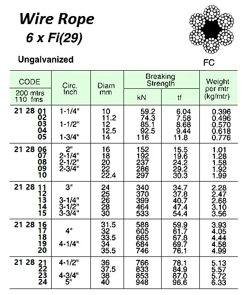| Description | WIRE ROPE, UN-GALV, 6xFI(29) FC 36 MM DIA x 200 M |