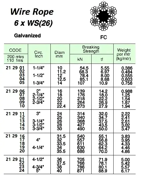 | Description | WIRE ROPE, GALV. 6xWS(26) FC 10 MM DIA x 200 M |