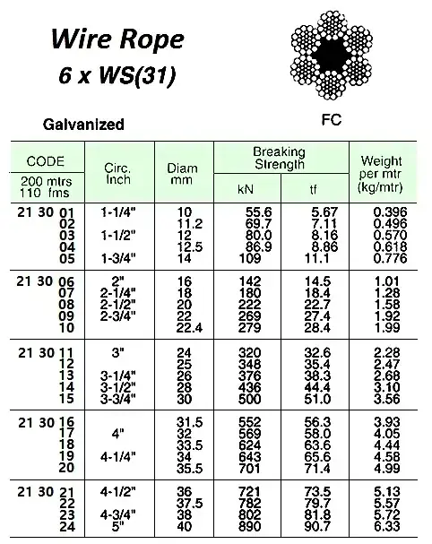 | Description | WIRE ROPE, GALV. 6xWS(31) FC 34 MM DIA x 200 M |