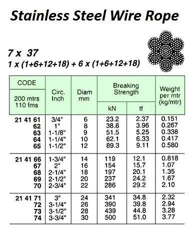 | Description | WIRE ROPE, ST. STEEL SUS304 7x37 IWRC, 9 MM x 200 M |