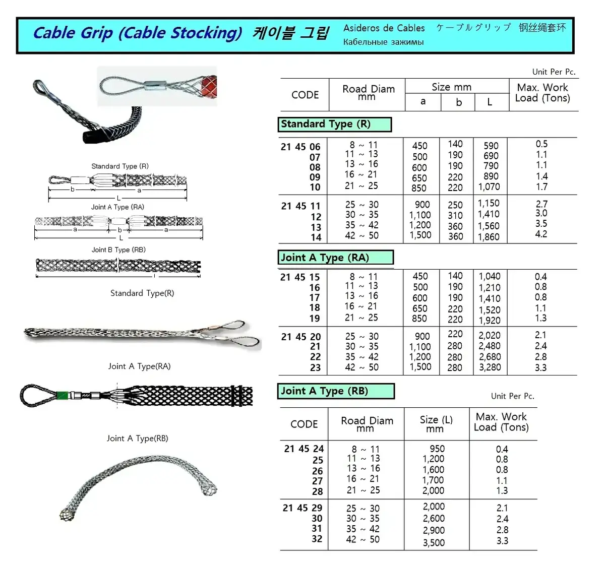 | Description | CABLE GRIP (CABLE STOCKING) JOINT TUBE RB TYPE, ROPE DIA :42-50 MM |