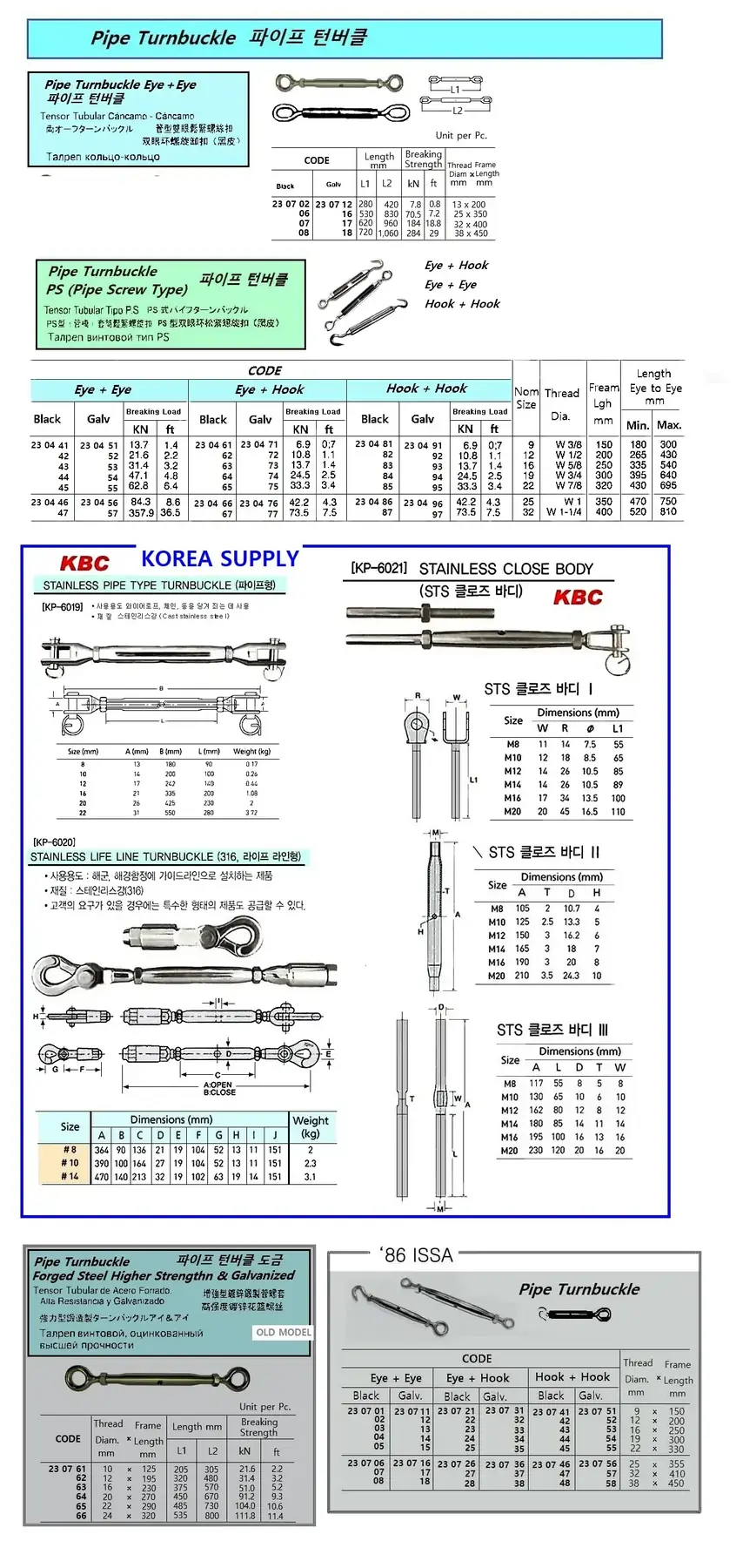 | Description | Old Model : FORGED STEEL HIGH STRENGTH PIPE TURNBUCKLE, EYE & EYE, GALV. 12 x 195 MM |