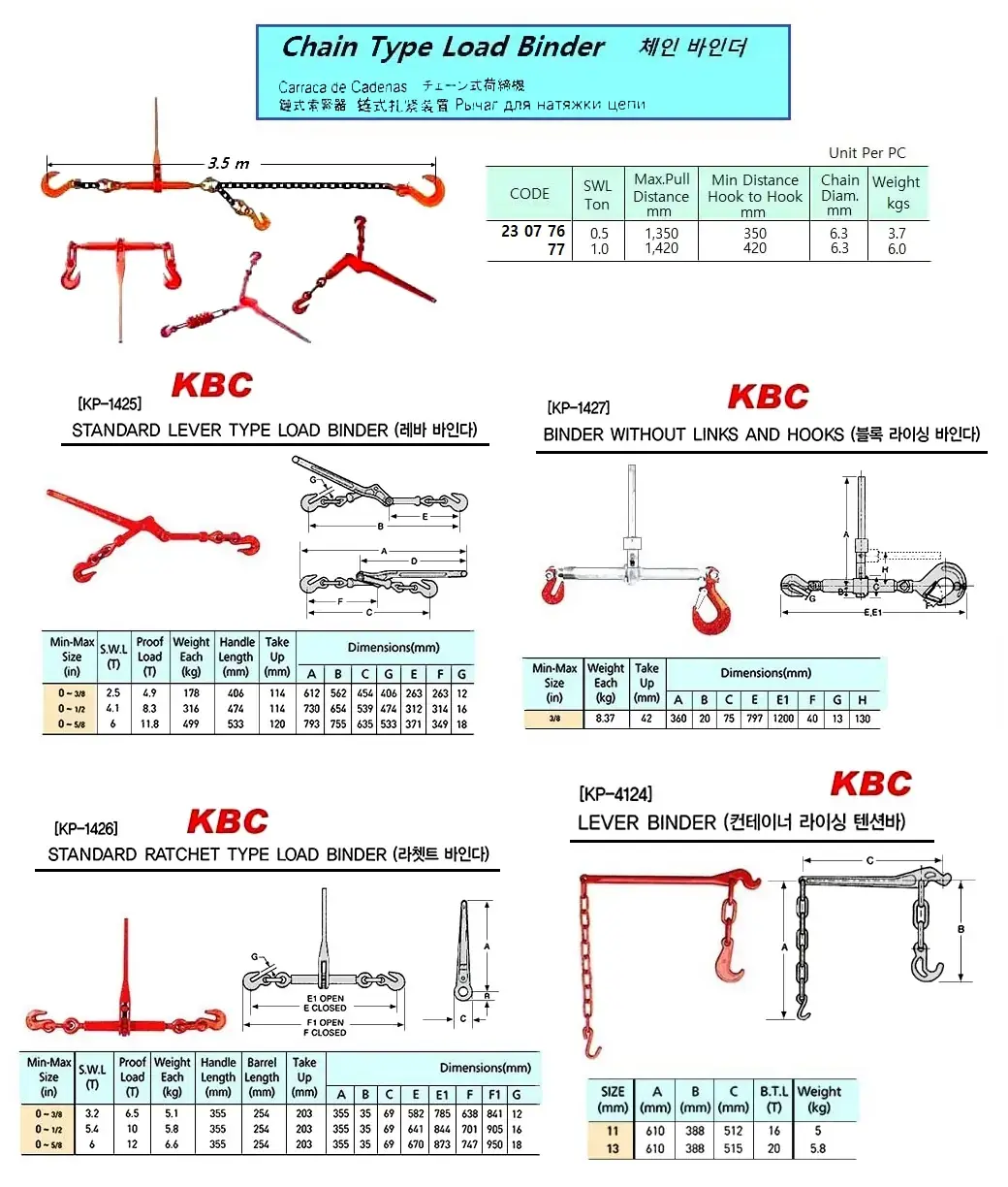 | Description | CHAIN TYPE LOAD BINDER, 1.0 TON, MAX: 1,420 MM |