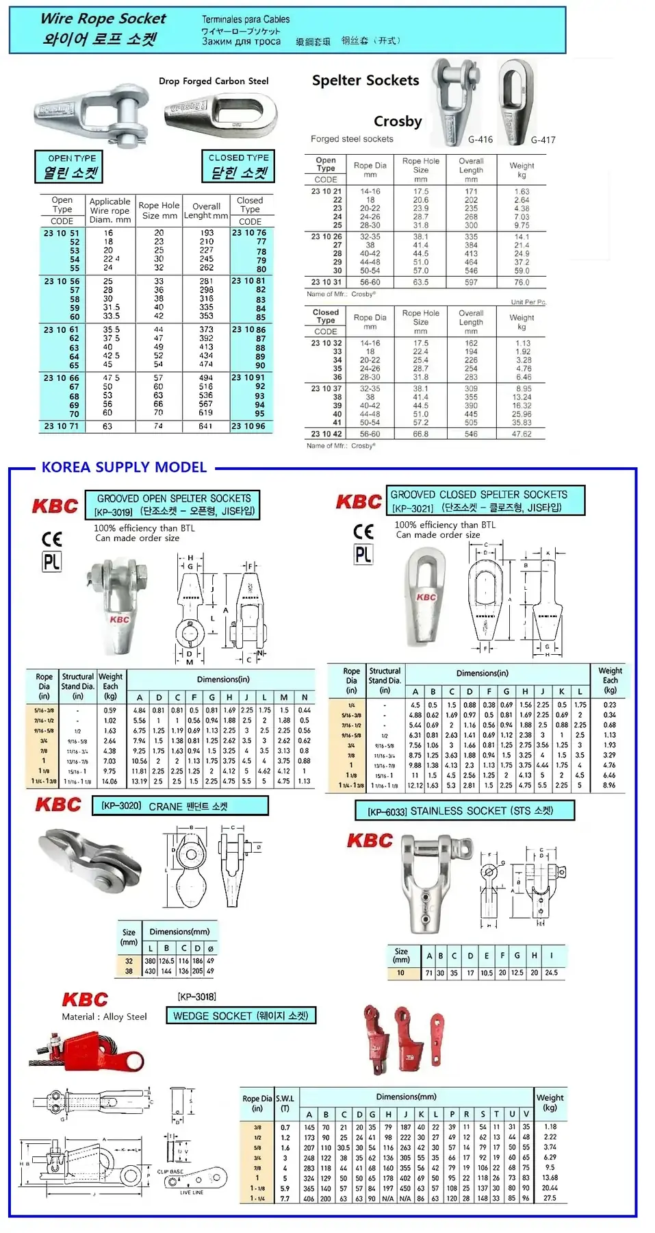 | Description | CLOSED TYPE WIRE ROPE SOCKET, CROSBY G-417, FOR 56-60 MM DIAM |