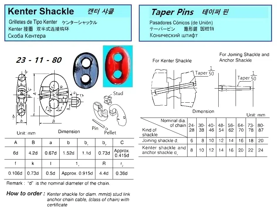 | Description | KENTER SHACKLE FOR STUD LINK ANCHOR CHAIN (NEED SIZE) |