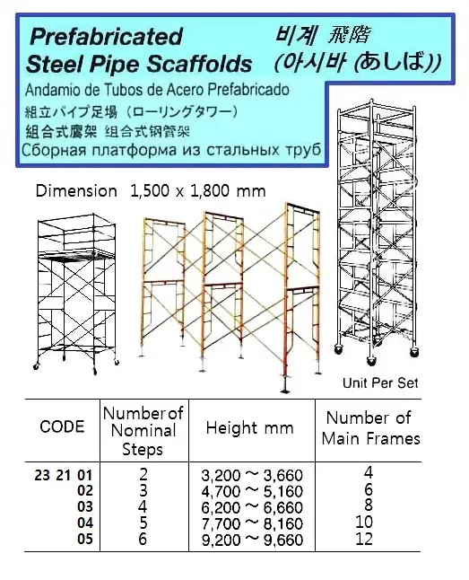 | Description | PREFABRICATED STEEL PIPE SCAFFOLD (ROLLING TOWER), 5 STEPS, 7.7~8.16 MTR |