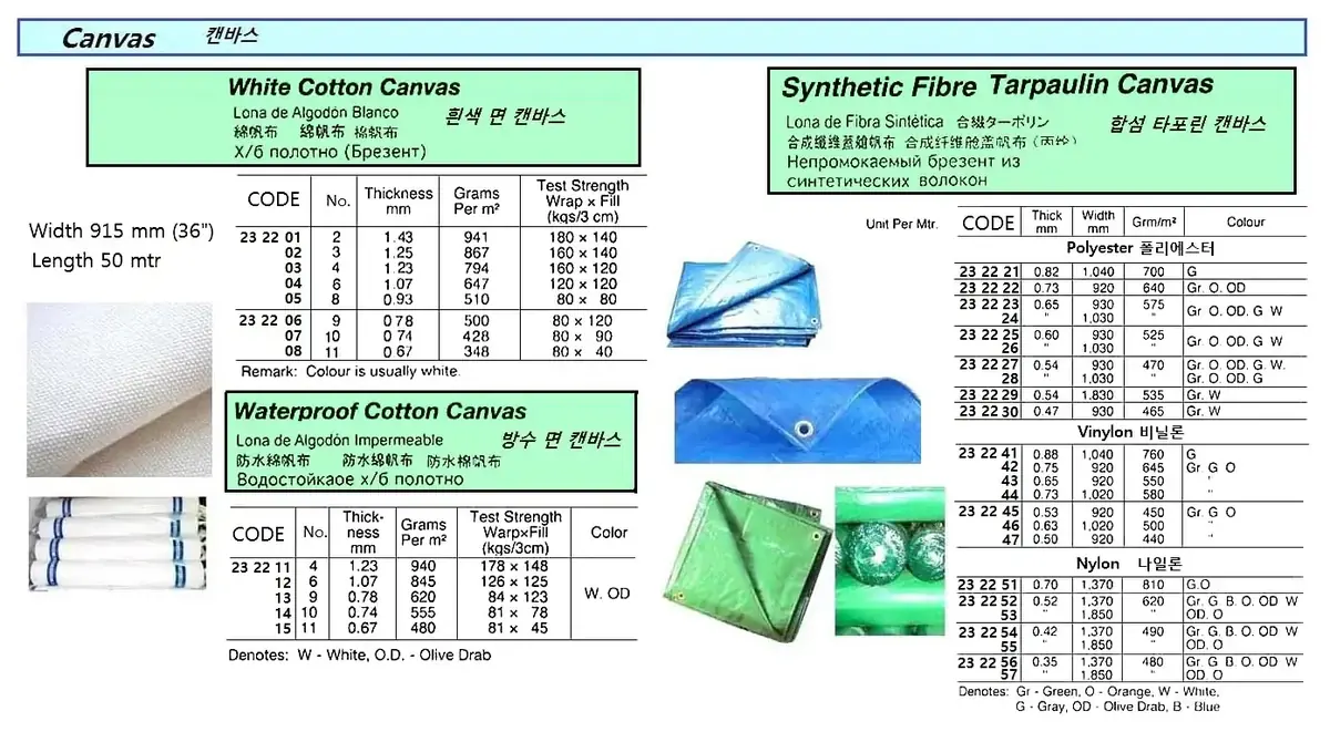| Description | WHITE COTTON CANVAS, NO.9 915 MM WIDTH |