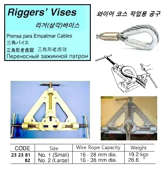 | Description | RIGGERS' VISE, NO.1 FOR 16-28 MM ROPE DIA |