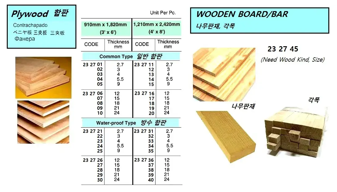 | Description | WATERPROOF PLYWOOD, 1210 x 2420 x 2.7 MM |