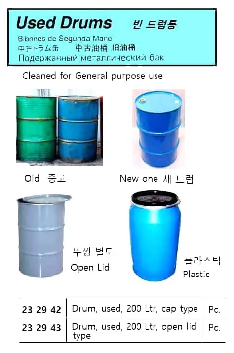 | Description | USED DRUM, 200 LTR, OPEN LID TYPE |