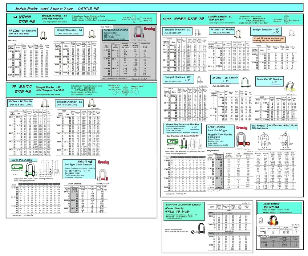 | Description | Old Model, CROSBY, FORGED CHAIN SHACKLE, (SA) ROUND PIN TY, G-215, GALV, 1' |
