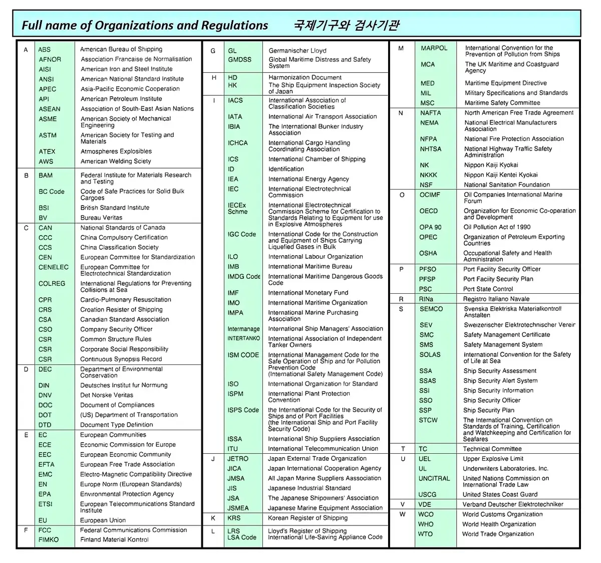 | Description | FULL NAME OF ORGANIZATIONS AND REGULATIOINS |