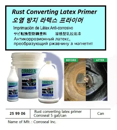 | Description | RUST CONVERTING LATEX PRIMER CORROSEAL 5 GALLON/CAN |