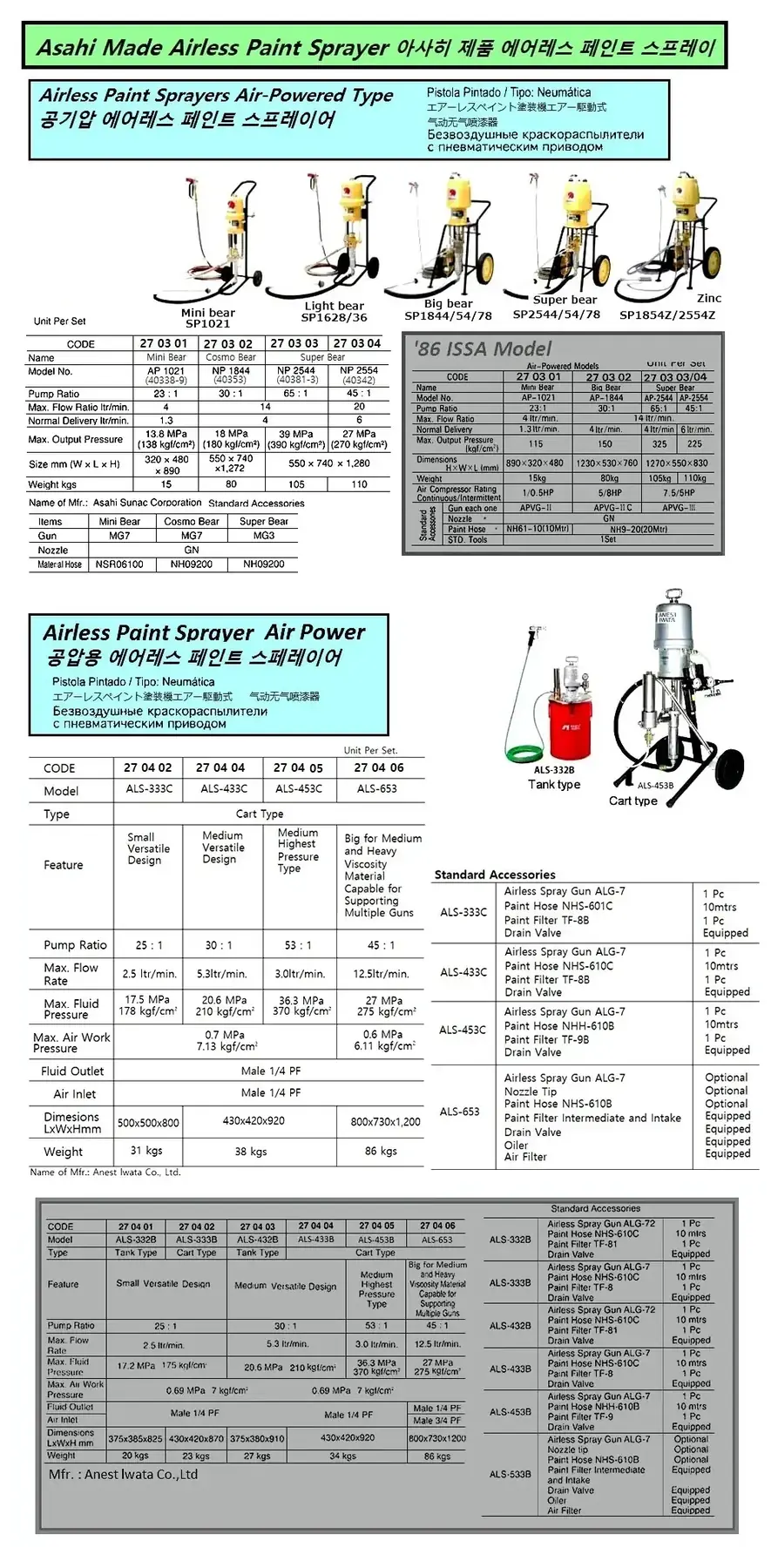 | Description | AIR POWER CART TYPE AIRLESS PAINT SPRAY, IWATA, ALS-453C PUMP RATIO 53:1 |