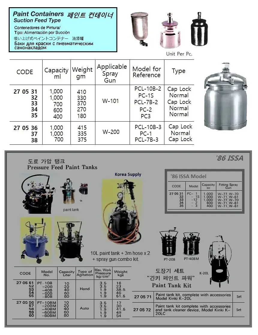 | Description | SUCTION FEED TYPE PAINT CONTAINER, FOR W-101 GUN, 400 ML. NORMAL TY |