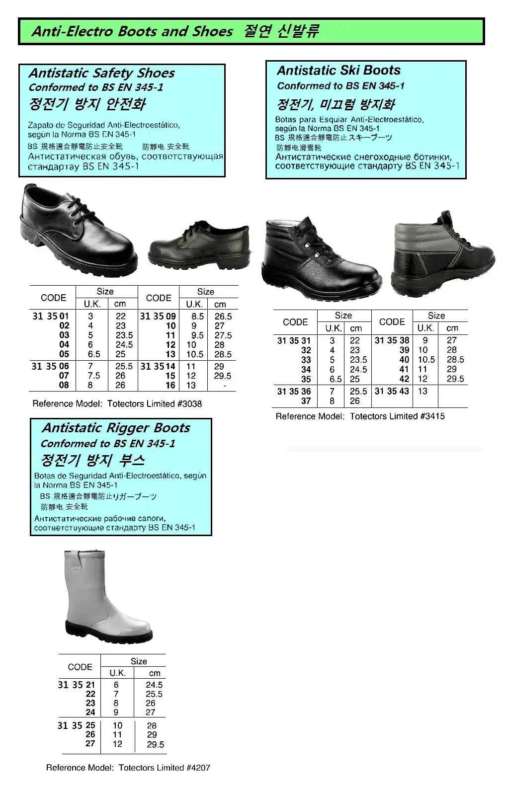 | Description | ANTISTATIC SKI BOOTS, CONFORMED TO BS EN 345-1, UK 3 , 22 CM |