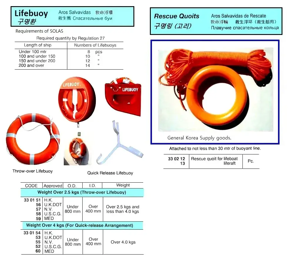 | Description | GENERAL PURPOSE LIFE BUOY, 2.5 - 4 KG, 400-800MM, NV APPORVE |