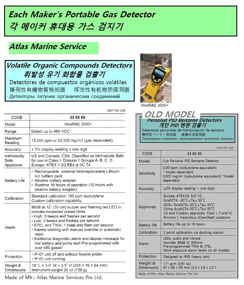 | Description | VOLATILE ORGANIC COMPOUNDS DETECTOR, MINIRAE 3000+, ATLAS MARINE |
