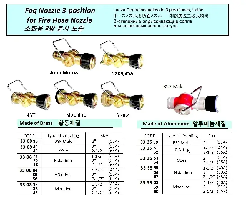 | Description | FOG NOZZLE 3-POSITION FOR FIRE HOSE NOZZLE, BRASS, ANSI PIN, 2" (50A) |