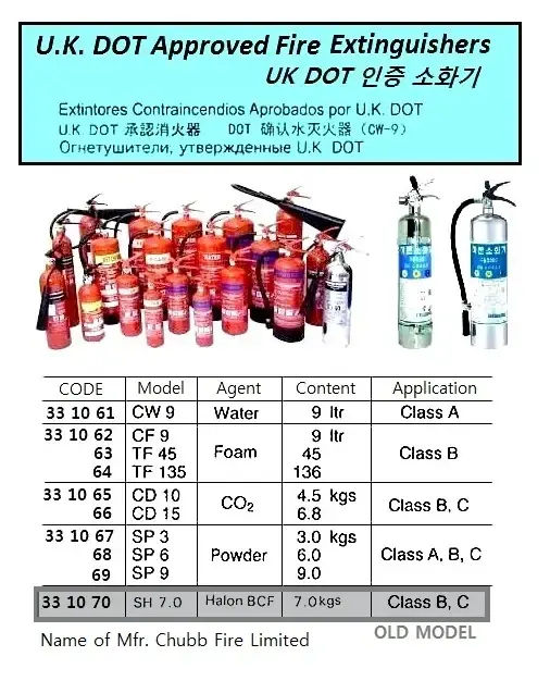 | Description | UK DOT APRV FIRE EXTINGUISHER, FOAM, MODEL TF-45 45 LTR, CHUBB FIRE LIMITED |