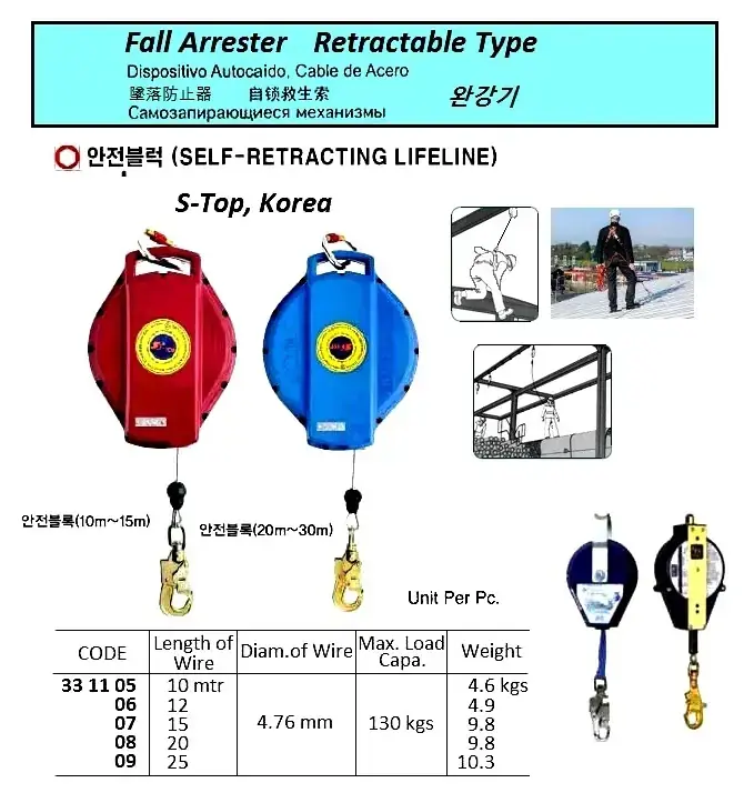 | Description | SELF-LOCKING LIFELINES, MAX. LOAD : 130 KGS, 4.76 MM x 10 MTR WIRE |