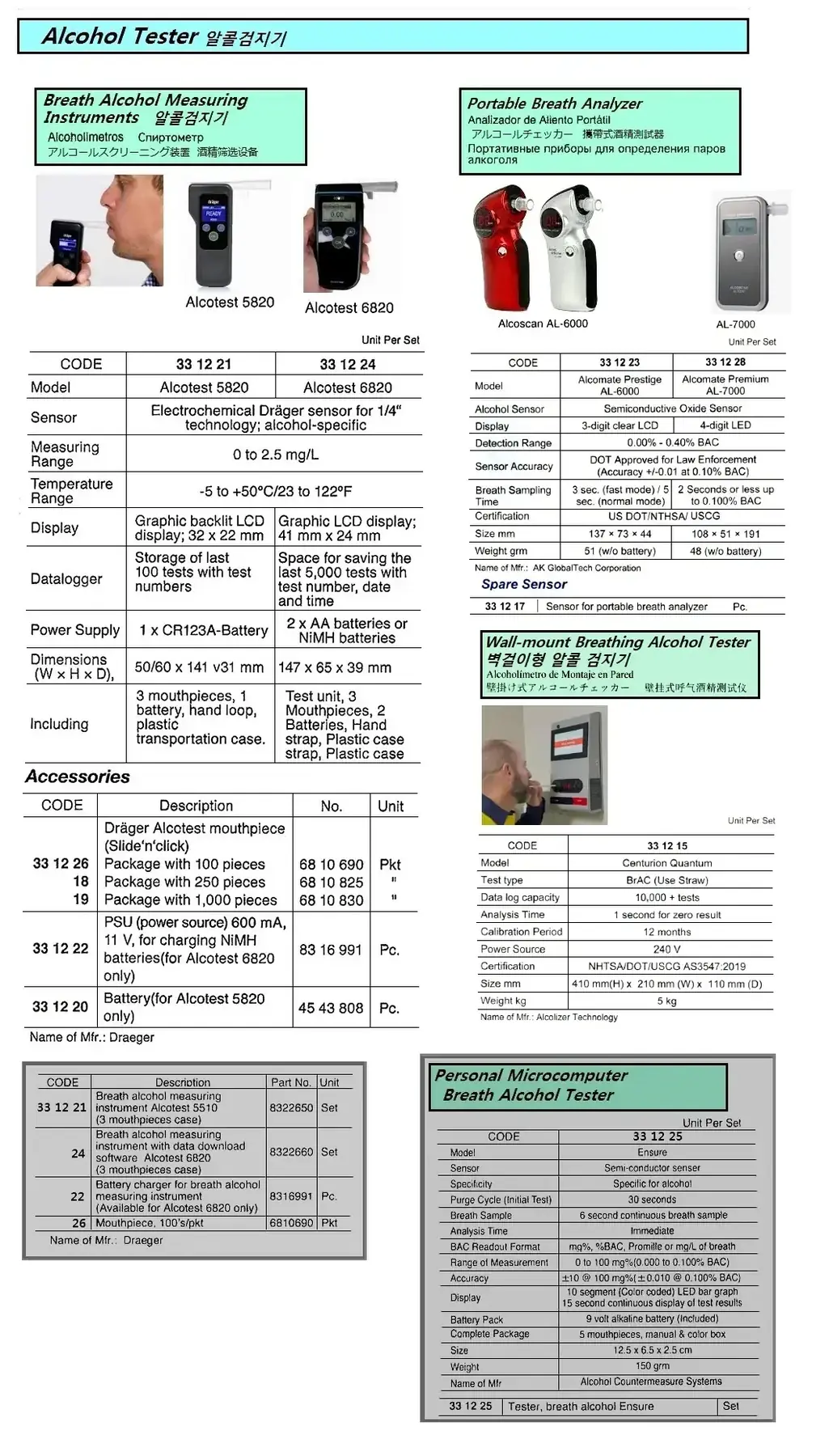 | Description | SENSOR FOR AL-6000 & AL-7000 ALCOHOL TESTER |