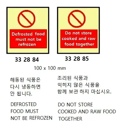 | Description | GALLEY SIGN, 100x100 MM, DO NOT STORE RAW AND COOKED FOOD TOGETHER |