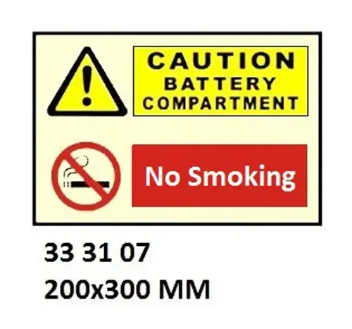 COMBINATION SIGN, 200x300 MM, CAUTION BATTERY COMPARTMENT…