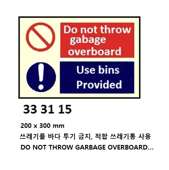 | Description | COMBINATION SIGN, 200x300 MM, DO NOT THROW GARBAGE OVERBOARD… |