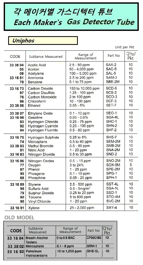 | Description | TUBE TYPE GAS DETECTOR, UNIPHOS, 10'S/PKT, ETHANOL |