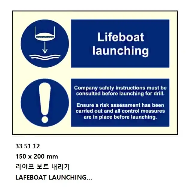 | Description | LSA SIGN, 150x200 MM, LAFEBOAT LAUNCHING… |