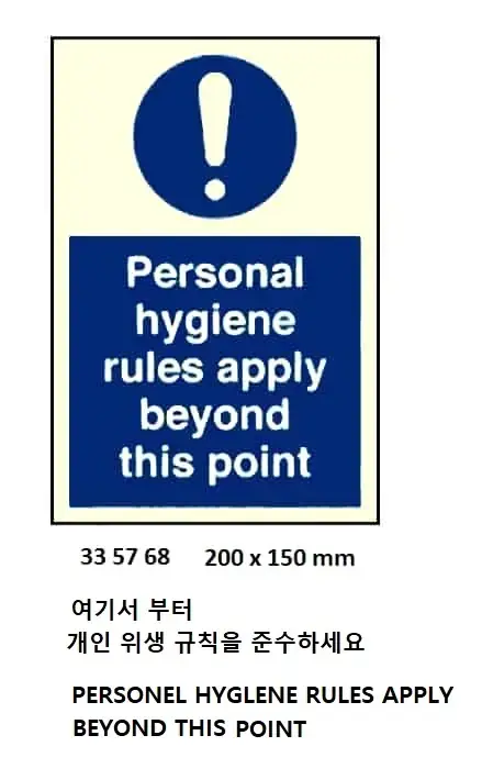 | Description | GALLEY SIGN, 200x150 MM, PERSONEL HYGLENE RULES APPLY BEYOND THIS POINT |