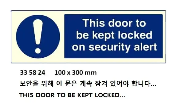 | Description | ISPS CODE SIGN & SECURITY SIGN, 100x300 MM, THIS DOOR TO BE KEPT LOCKED… |