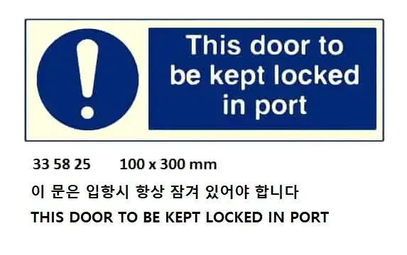 | Description | ISPS CODE SIGN & SECURITY SIGN, 100x300 MM, THIS DOOR TO BE KEPT LOCKED IN PORT |