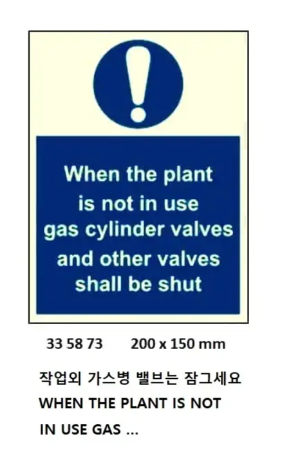 | Description | MANDATORY SIGN, 200x150 MM, WHEN THE PLANT IS NOT IN USE GAS … |